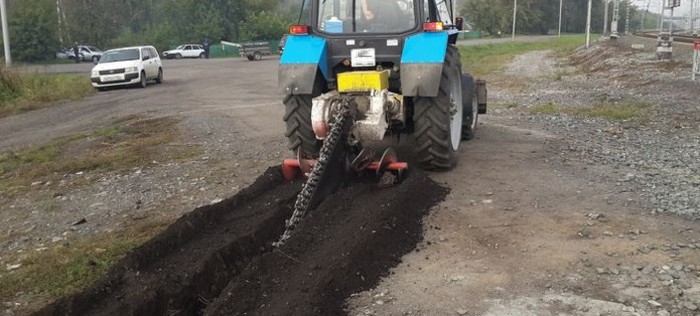 Поиск грунторезов для рытья траншей | Выполним помощь в поиске тракторов с цепной барой или грунтореза для земляных работ, копки траншей, прорезки асфальта. Рассылаем заявку владельцам спецтехники по рег...полное описание. Ширина траншеи, мм: 200 Глубина прореза, м: 1.8 Тип шасси: колёсный | Поднять в ТОПВологда